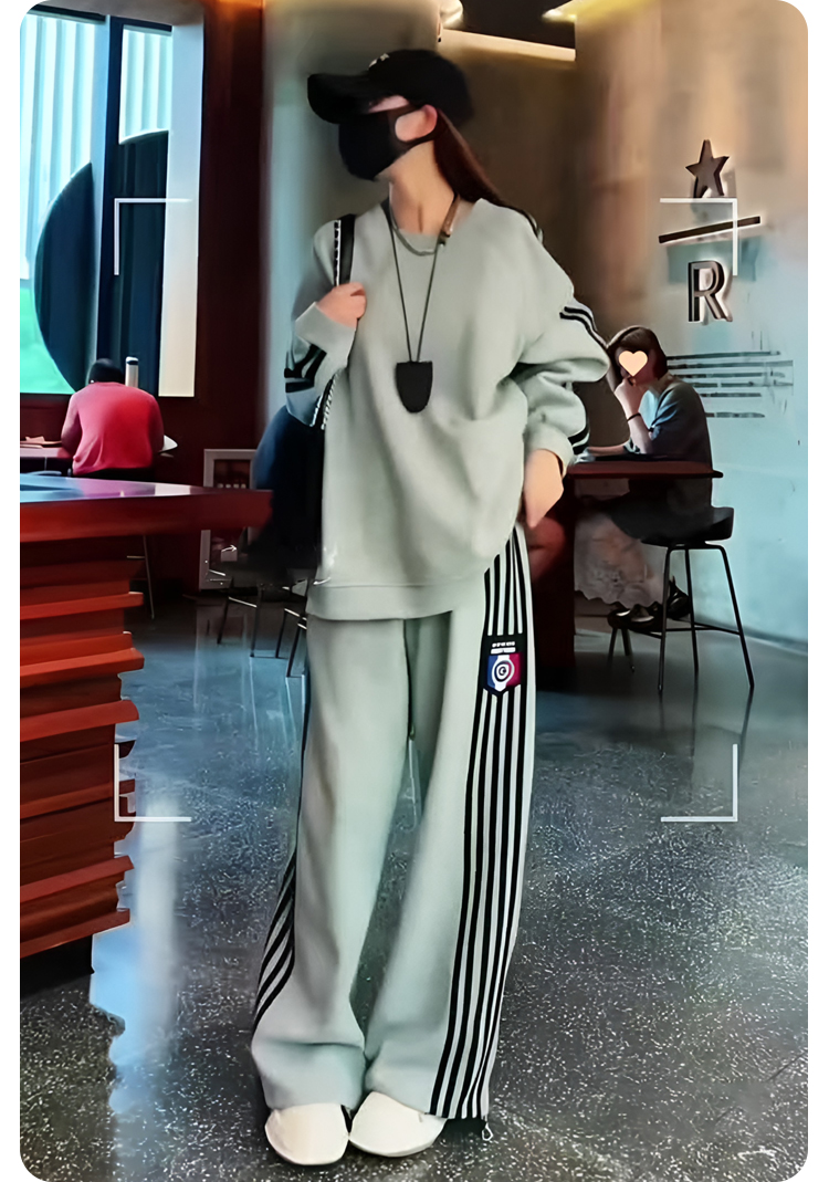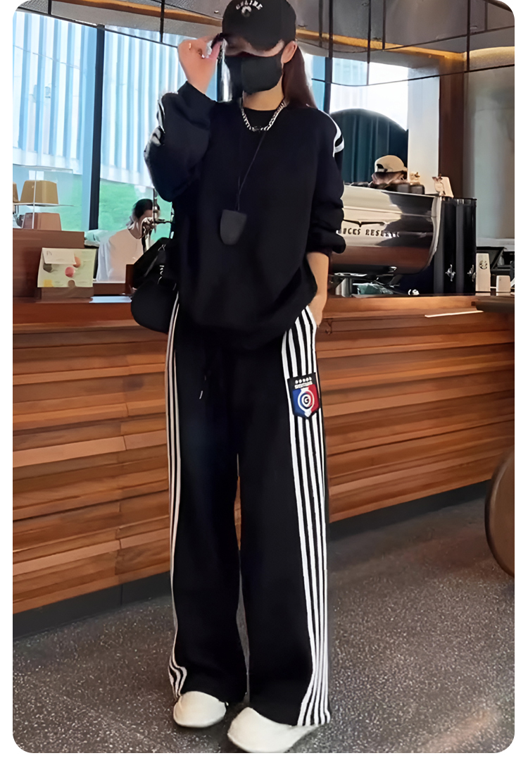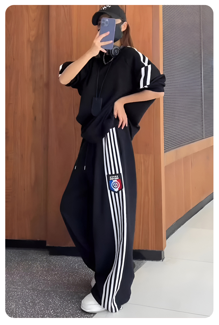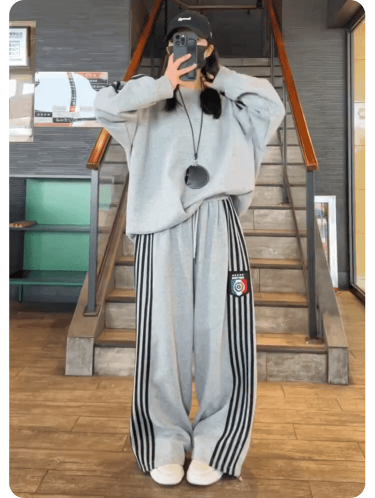 クールでスタイリッシュなオーバーサイズのスウェットとワイドパンツのセットアップ。