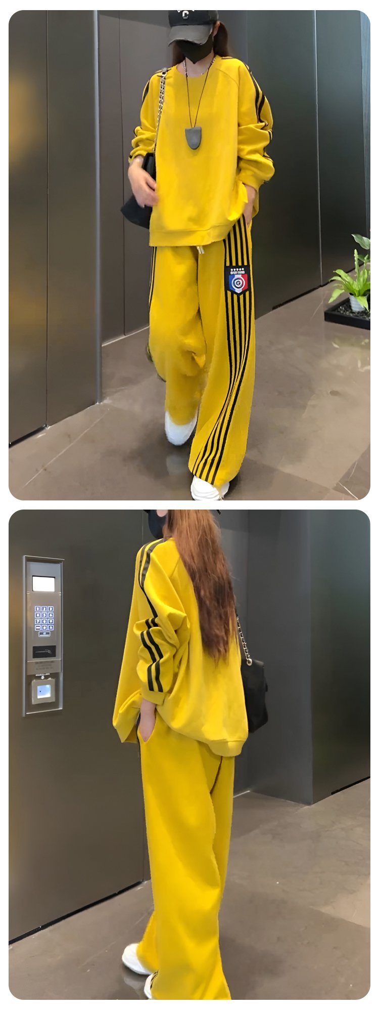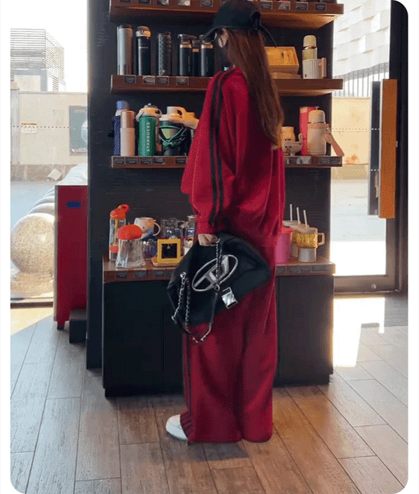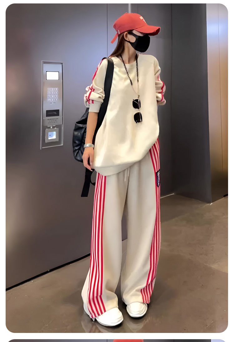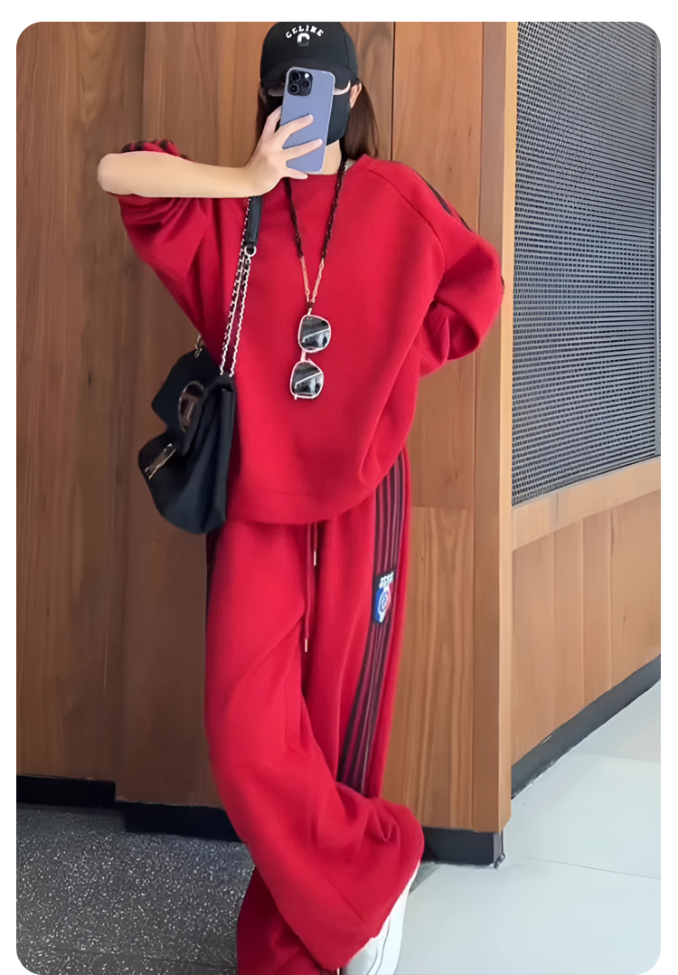 クールでスタイリッシュなオーバーサイズのスウェットとワイドパンツのセットアップ。
