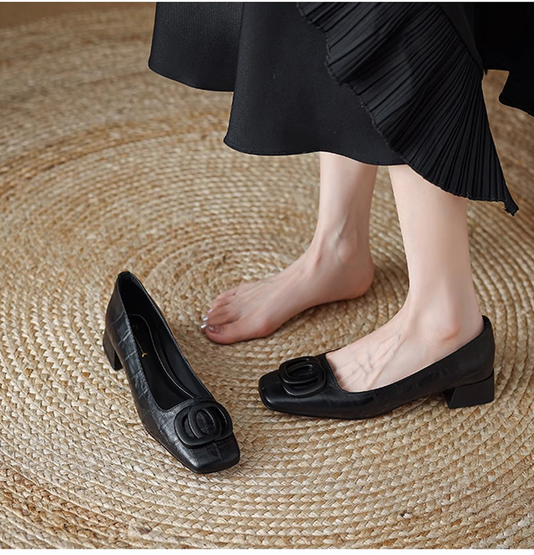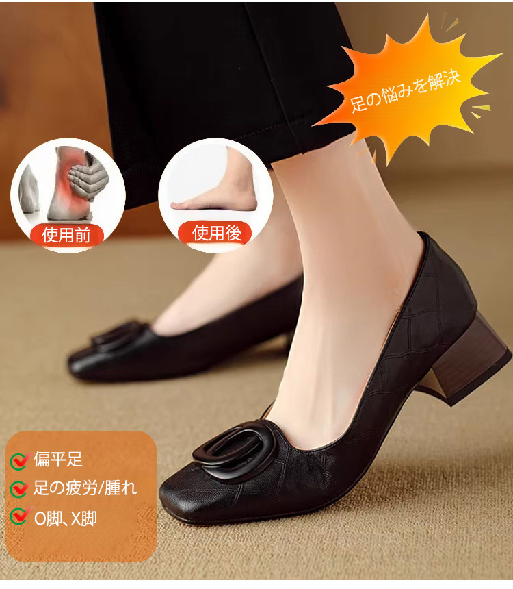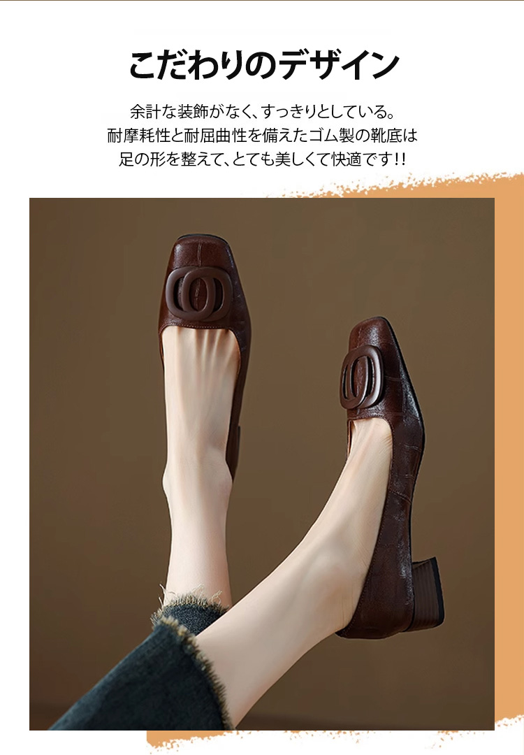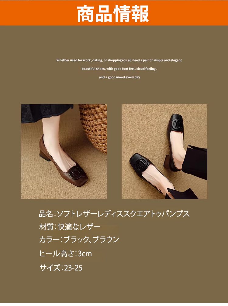 ソフトレザーレディススクエアトゥパンプス